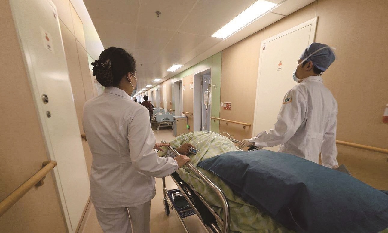刚做完手术的方秀丽(化名)被医护人员推回病房 通讯员供图