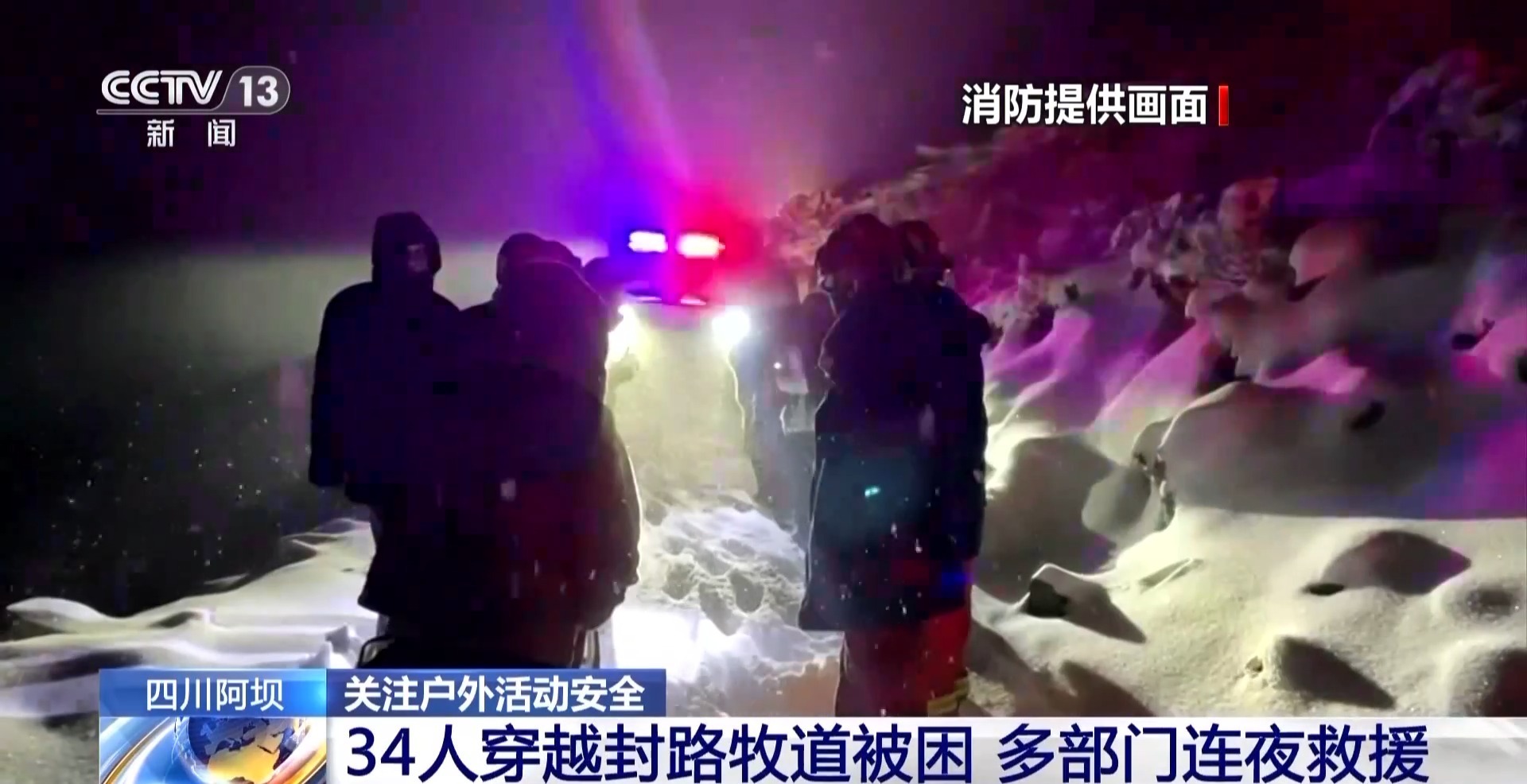 近日,在四川阿坝州金川县一条已封路的网红牧道上,34名穿越者因突发暴雪陷入困境。当地消防联动多部门连夜救援,最终将所有被困人员安全转移。