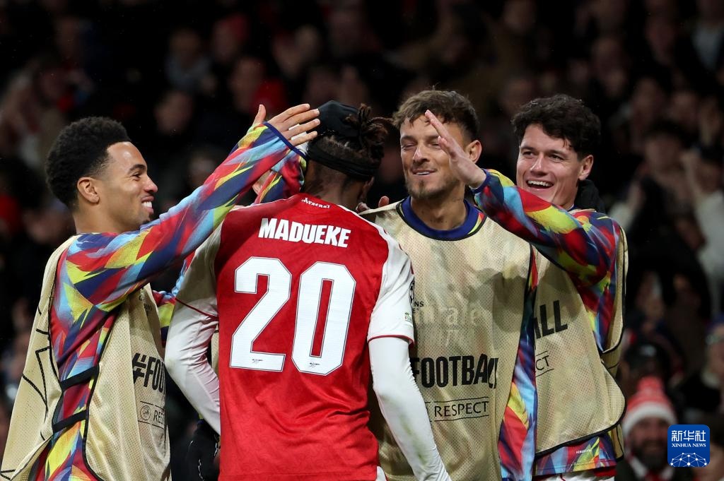 11月26日,阿森纳队球员马杜埃凯赛后庆祝胜利。