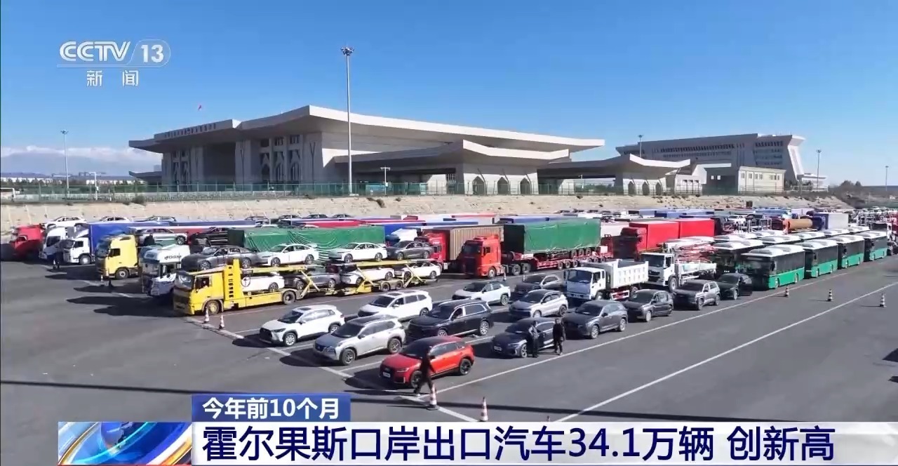 作为全国最大的汽车出口陆路口岸,霍尔果斯口岸汽车出口呈现出迅猛增长的态势。据海关统计,2025年1—10月霍尔果斯口岸出口汽车34.1万辆,同比增长3.2%,创历史新高。其中,出口电动汽车14.1万辆,同比增长44.7%,电动汽车是中亚五国及俄罗斯等地广受欢迎的热门车型。