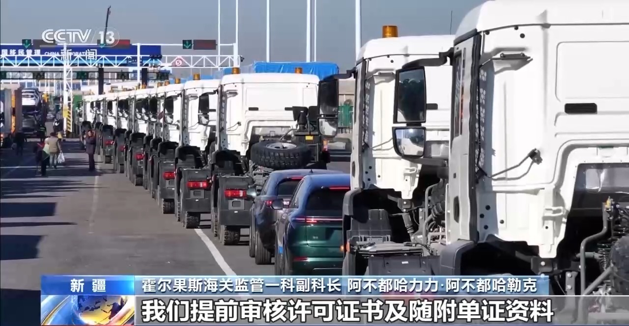 霍尔果斯海关监管一科副科长 阿不都哈力力·阿不都哈勒克:我们提前审核许可证书及随附单证资料,持续压缩通关时间,打造最优通关环境,助力国产汽车加快“出海”步伐。