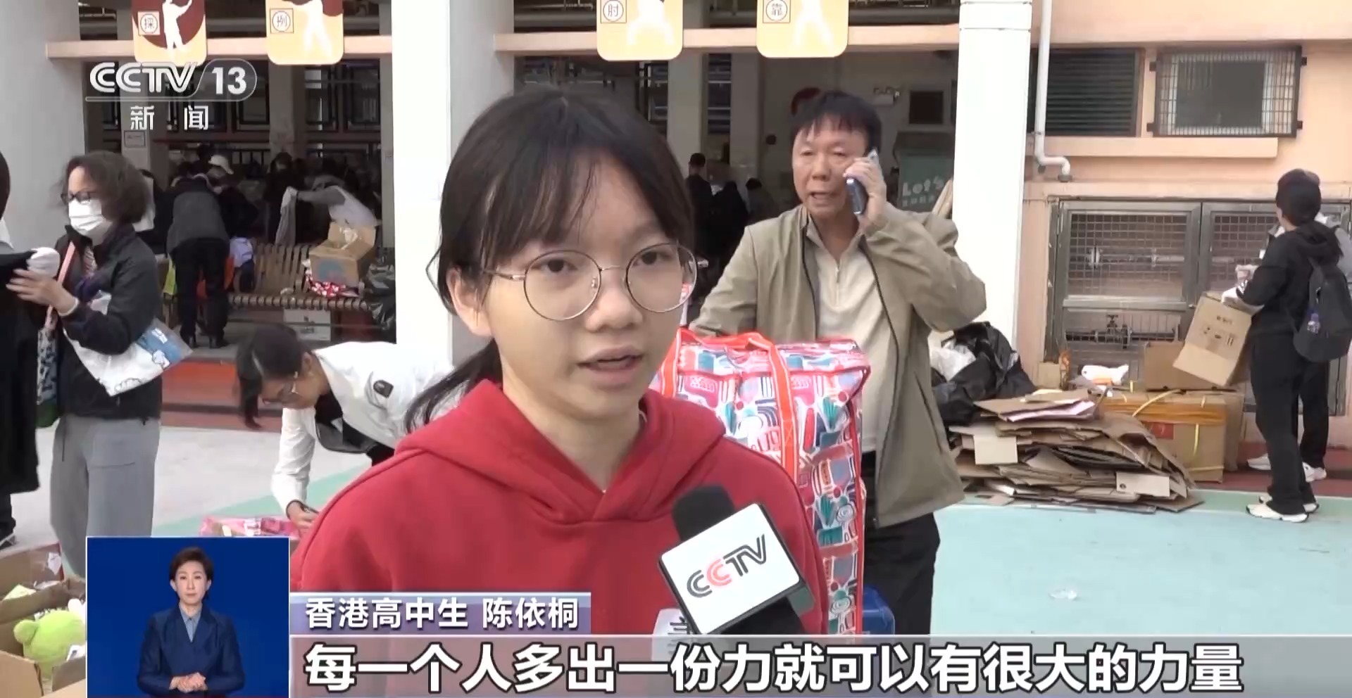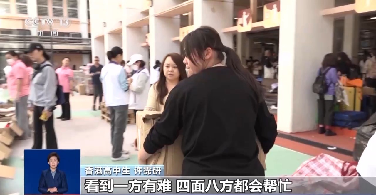 总台记者 金东:我身后就是一个临时庇护中心。不少香港市民自发准备物资,运送粮食、水、毛巾和棉被等赶来支援,协助解决受灾居民的燃眉之急。