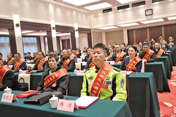 表彰大会现场,极目新闻记者了解到,此次表彰的见义勇为英雄、先进(群体)中,有辅警、退役军人、快递员、个体户、医生、社区居民、村民……虽然籍贯不同、职业不同、年龄不同,但他们都在人民群众生命财产受到严重威胁和不法侵害的危急关头,以勇敢无畏捍卫了人间正气,以平凡善举诠释了人间大爱,为全社会树立了榜样,赢得了全社会的尊崇。