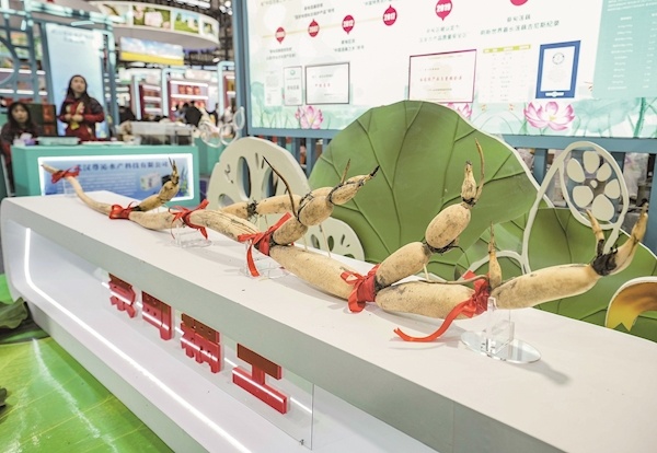 无独有“藕”。在咸宁陆溪展位,工作人员向逛展市民介绍着一支2米多长的莲藕:“我们的莲藕细细长长,都是非常清爽、粉糯的优质品种。”该展位还现场煨制排骨藕汤,供大家免费品尝。