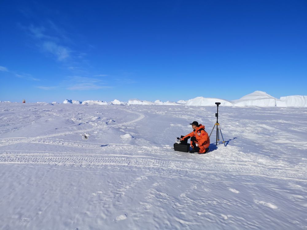 图为乔刚在南极中山站附近海冰冰面开展无人机作业。(受访者供图)
