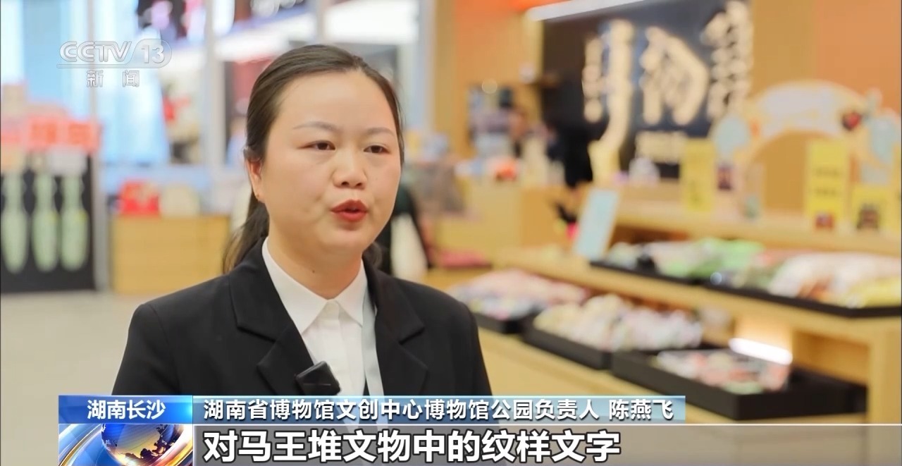 湖南省博物馆文创中心博物馆公园负责人 陈燕飞:我们首先通过高精度扫描,微观摄影及三维建模等技术,对马王堆文物中的纹样文字等核心美学元素进行精准采集与提取,形成原始数字素材库。通过联手签约设计师、插画师进行二次创作,使其既保持文化基因,又符合当代审美,创造了实物加产品加数字体验的新型消费体验。