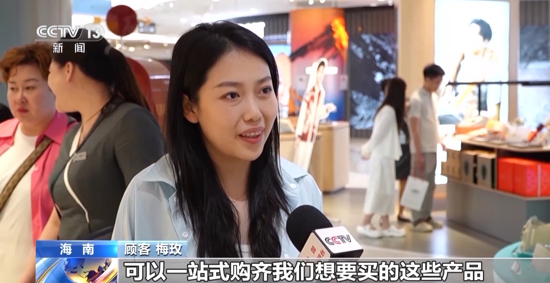 中免集团三亚市内免税店有限公司销售部总监助理 闫琳:现在离境客人可以在店内直接选购,岛内居民即购即提政策也极大地提升了本地居民的消费便利性。