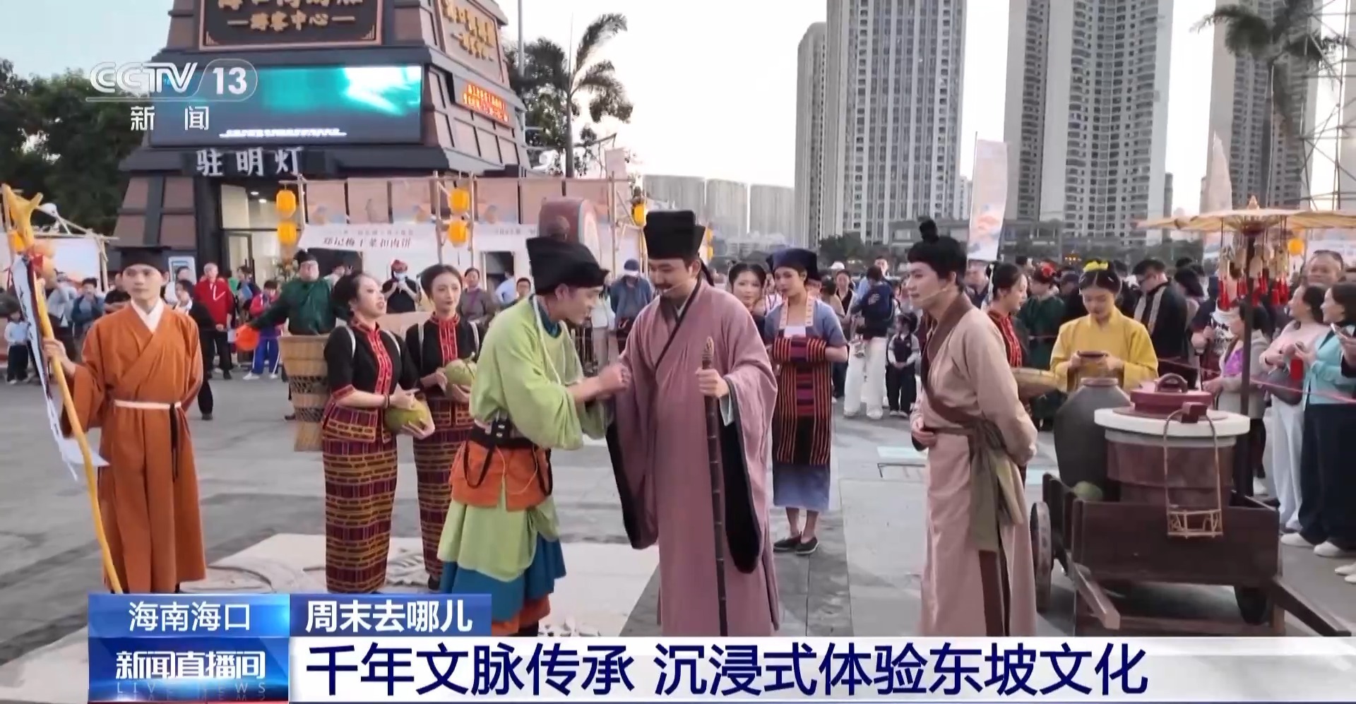总台记者 董彬:这里是海南海口的东坡老码头,整栋建筑就是一艘巨型游船的造型。在整个美食文化荟期间,这里专门设立了美食市集,游客从这里穿过,就能够体验到与苏东坡经历相关的四十多种美食。