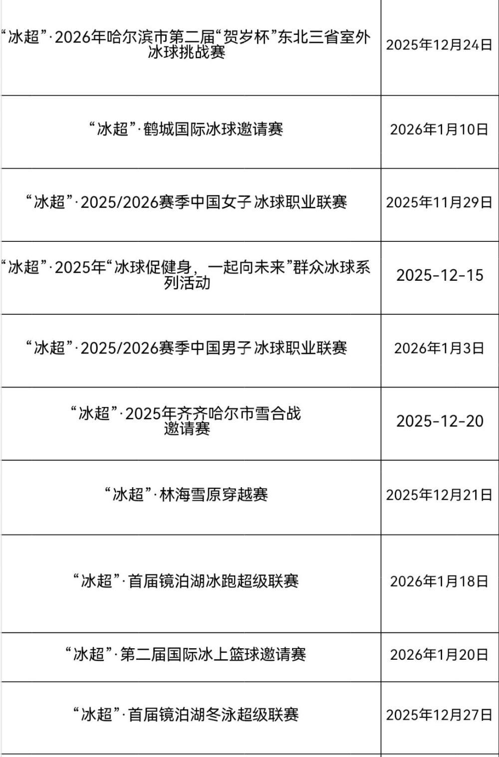 包括“冰超”赛事在内的