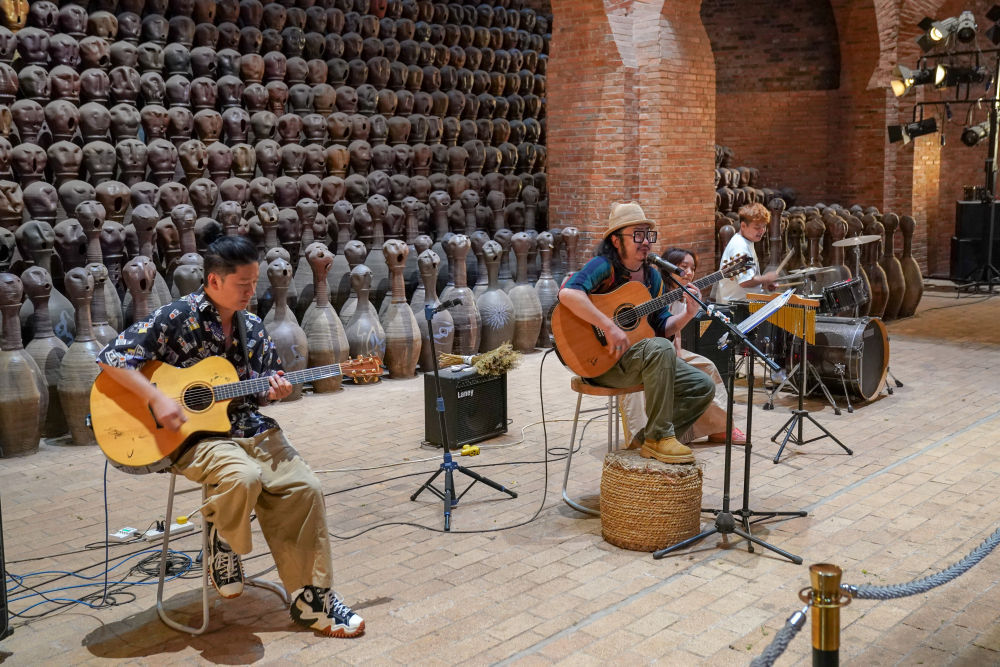 9月8日,歌手在东风韵小镇为游客表演。新华社记者 彭奕凯 摄