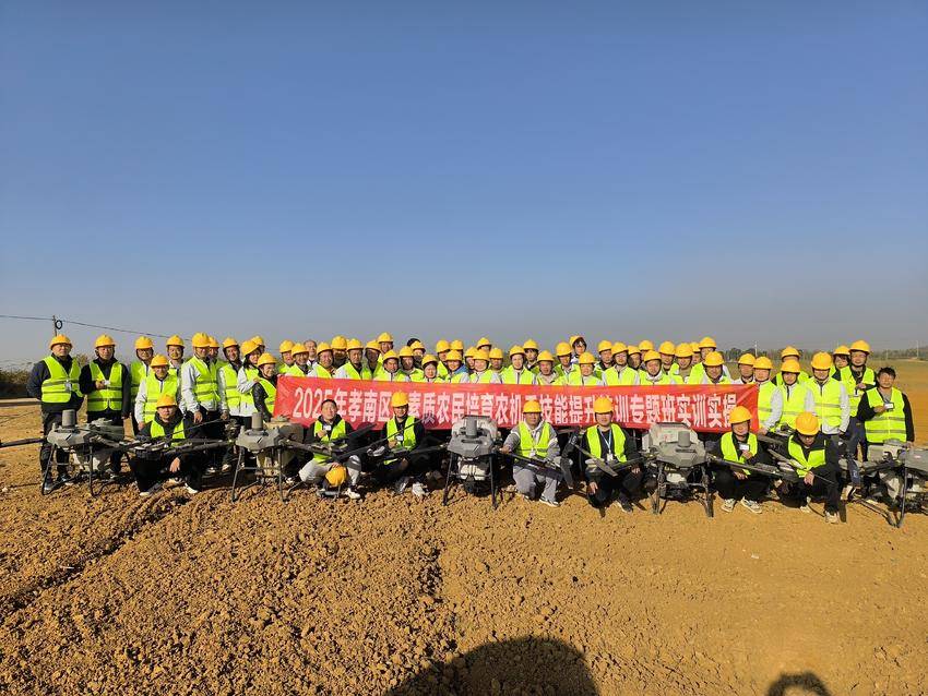 荆楚网(湖北日报网)讯(通讯员 刘瑞)一架架农用无人机腾空而起,在田间精准穿梭、均匀喷洒……11月28日,孝南区高素质农民培育农机手技能提升专题班无人机实操实训在杨店镇火热开展,50余名学员分成五小组轮番上阵,在专业老师的手把手指导下练操作、学技巧、排故障,确保人人上手实操、个个精通技能,田间地头洋溢着比学赶超的浓厚氛围。