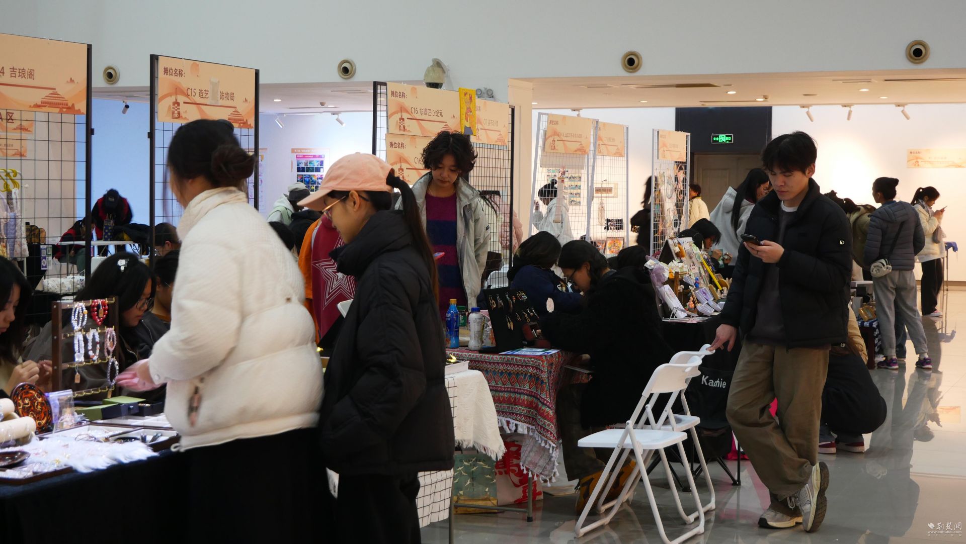 美术馆二楼60个文创集市展位人头攒动,空气中弥漫着创意与热情。该校师生运用烧箔、漆画、螺钿等各项非遗技术创造出日常生活用品,现场广受好评。“每一个作品都很吸引眼球!”参观学生华圆钰惊叹道。此次“最美国潮”摆台活动为学生实现创新创业比赛成果转化提供了一个平台,鼓励青年创业者走向更大的市场实现创业梦想。“前期我们团队已经实地考察湖北英山的缠花技艺,希望通过这次摆台让更多师生了解这项非遗,推动非遗传承项目落地。”摊位“缠花新韵”负责人许愿说。