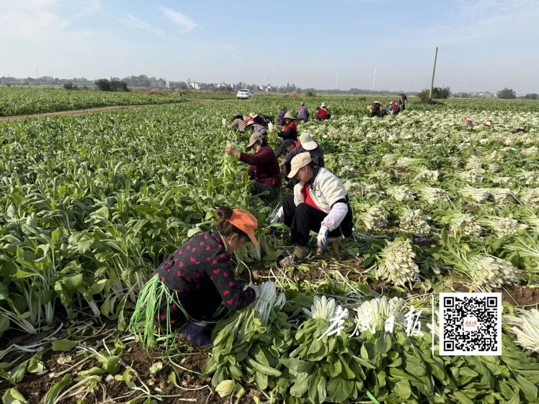 “每天工作不算累,包一餐中饭,能赚80块钱,还不耽误照顾家里。”正在田间采收的新港村村民王春凤说,家门口的种植基地让她的农闲时光有了实实在在的收入。