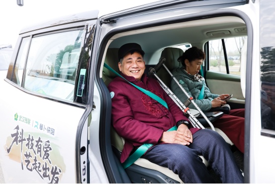 针对视障、肢体障碍等群体需求,萝卜快跑正持续优化服务流程与车辆设计。在体验现场,残疾人艺术家毛明月在妻子胡淑芬的陪伴下,来到一幅名为《秋日里的欢舞》的车身画作前。伸手轻触车门感应区,车门静声滑开。坐定后,指尖在座椅侧的触控屏上一滑,车门缓缓闭合,车辆平稳启程。“以前我们打车,上下车总是费劲。”妻子胡淑芬在一旁说道,“这种自动门设计空间够大,轮椅能放在后备箱,进出方便很多。”