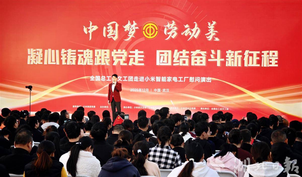 湖北日报讯(记者张真真、通讯员杨璐萍)12月1日,全国总工会文工团慰问演出走进位于湖北武汉的小米智能家电工厂。这里是小米“人车家全生态”战略的重要制造基地,也是小米打造高质量、智能化制造体系的新起点。
