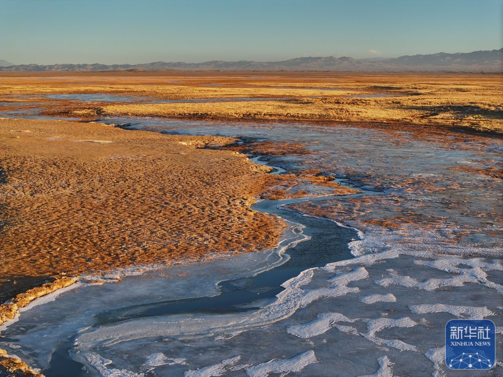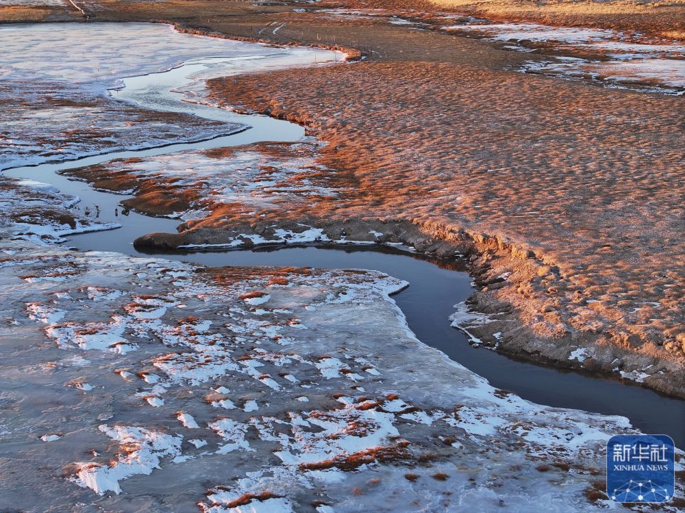 ↑ 这是12月1日在甘肃省阿克塞哈萨克族自治县阿勒腾乡哈尔腾村拍摄的大哈尔腾河冬景(无人机照片)。