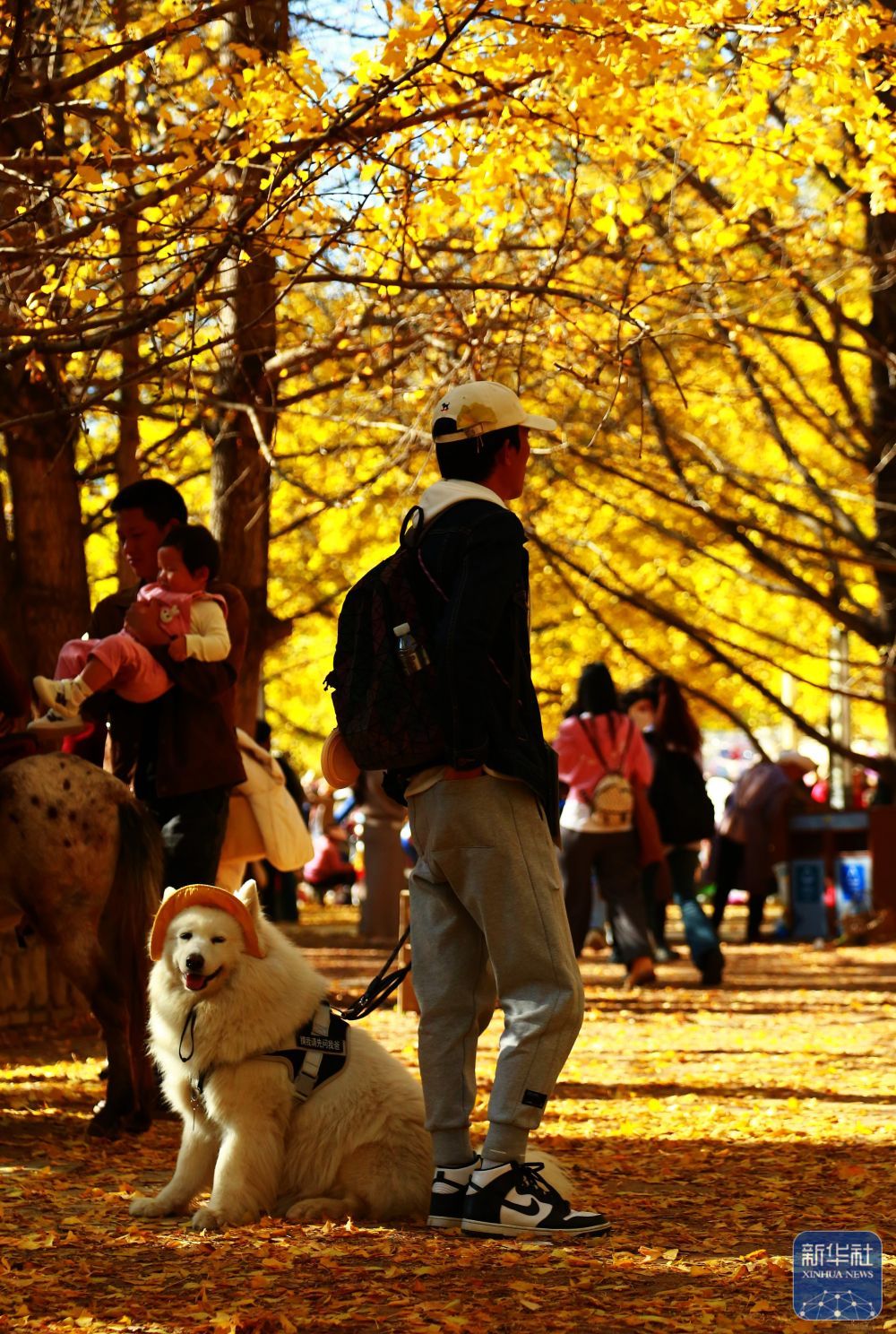 ↑ 11月30日,在云南省腾冲市固东镇江东银杏村,游客在打卡拍照。