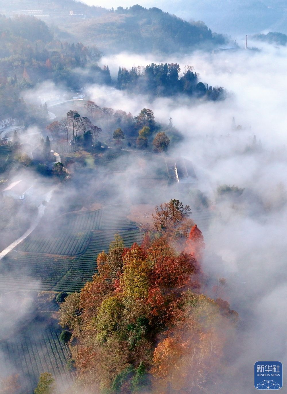 ↑ 12月1日拍摄的湖北省宣恩县珠山镇的森林一角(无人机照片)。