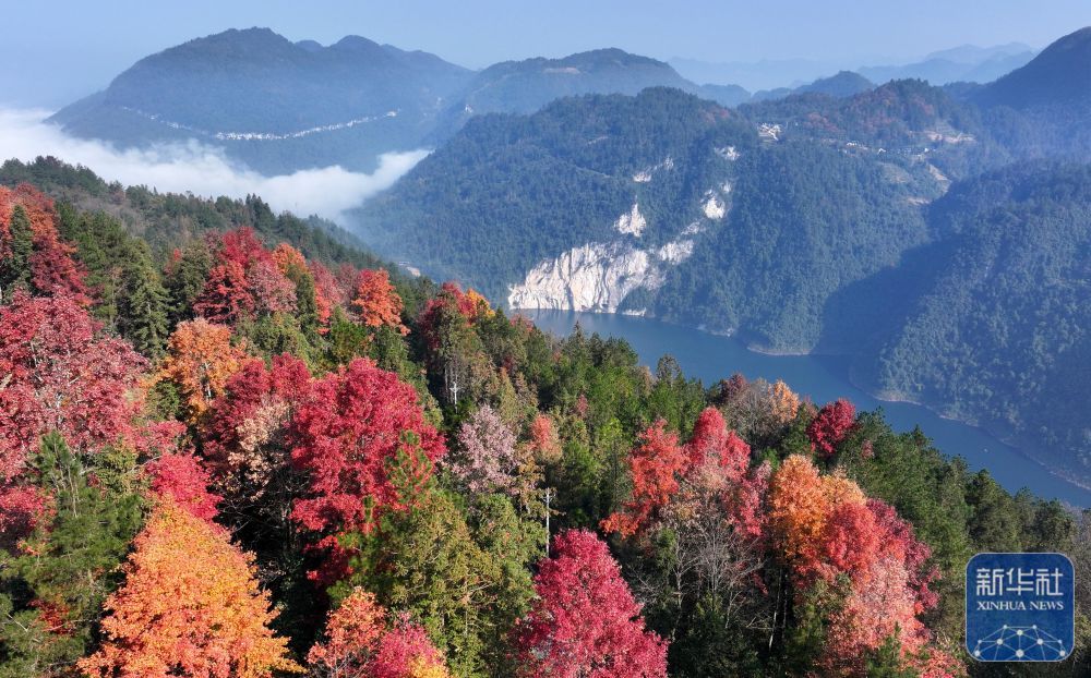 ↑ 12月1日在湖北省宣恩县珠山镇拍摄的山间一景(无人机照片)。
