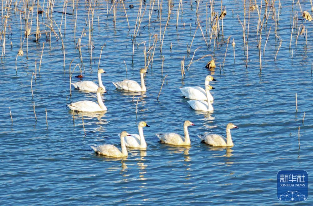↑ 12月1日,群鸟在江苏兴化里下河国家湿地公园内栖息(无人机照片)。