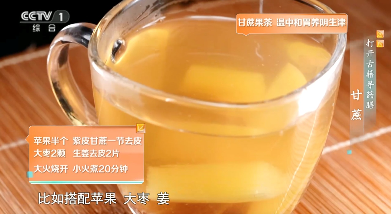 做法:紫皮甘蔗去皮后与苹果同煮,加入大枣、生姜调和,大火烧开后转小火煮20分钟。