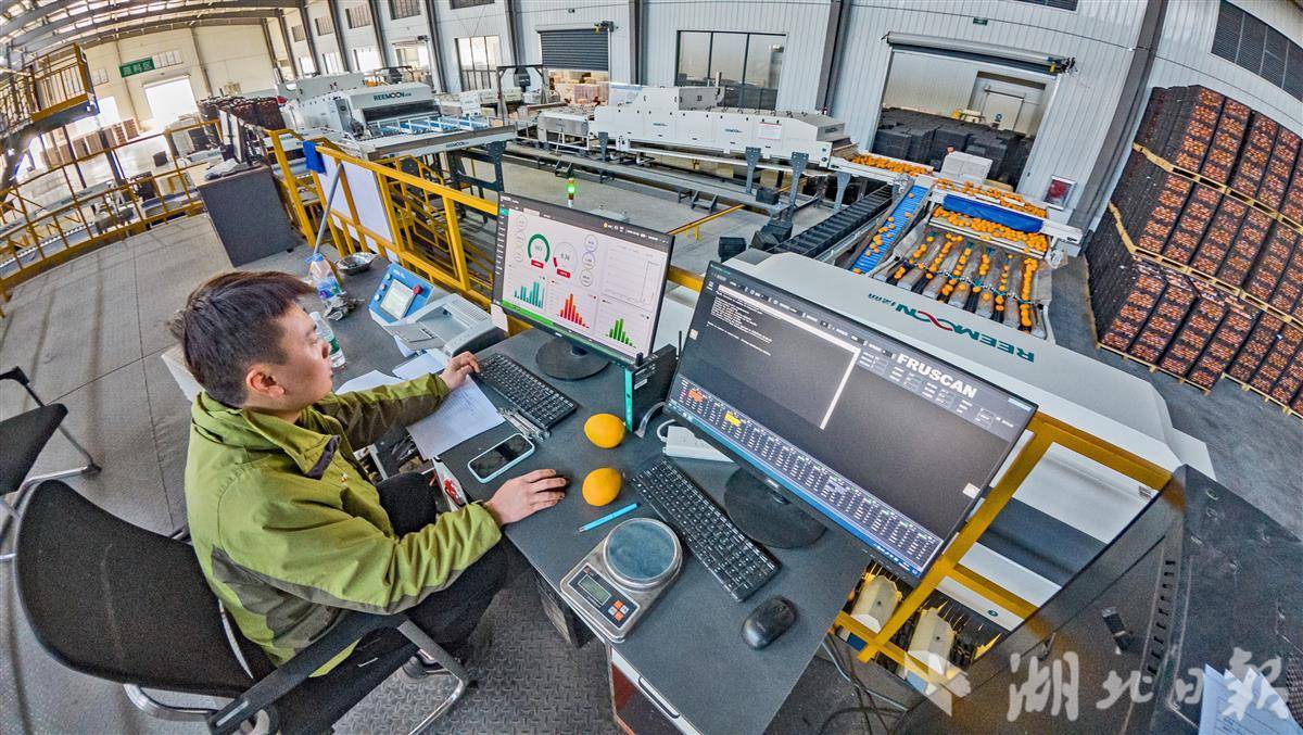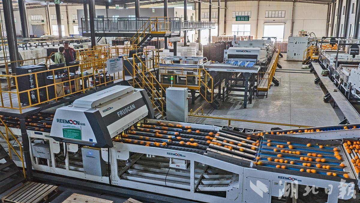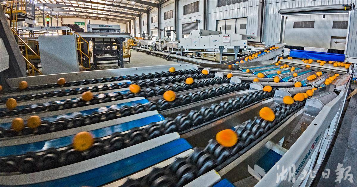 12月1日,宜都市高坝洲镇,湖北品冠农业科技发展有限公司的智能分选线正全速运转。脐橙与蜜柑在流水线上快速流转,设备依据果实的重量、颜色、瑕疵与糖度等多重指标,自动完成分级筛选与装箱。这批30吨的优质果品,经精准分选后即将发往俄罗斯。