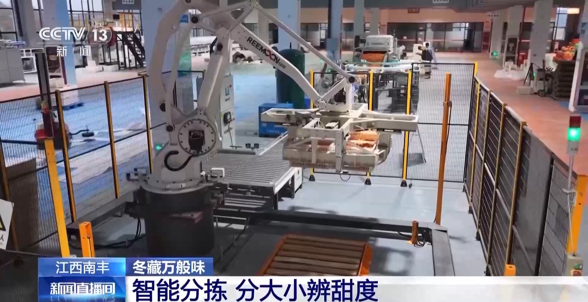 总台记者 赵学锋:上午挂枝头,晚上在海外,现代化的物流体系让蜜橘加速飞的同时,严格的品控把关也让蜜橘的品质实现了三级跳。在蜜橘挂果时,海关工作人员就提前对农残、虫害等情况到果园中摸底把住了出口的第一道关,装车过程海关还使用远程监管模式,实现了随验随放,车辆开出园区后,最快当天就能抵达海外市场的餐桌上。当下南丰县的数十条分拣线,正源源不断地将属于南丰的甜蜜传输到全世界40多个国家和地区。