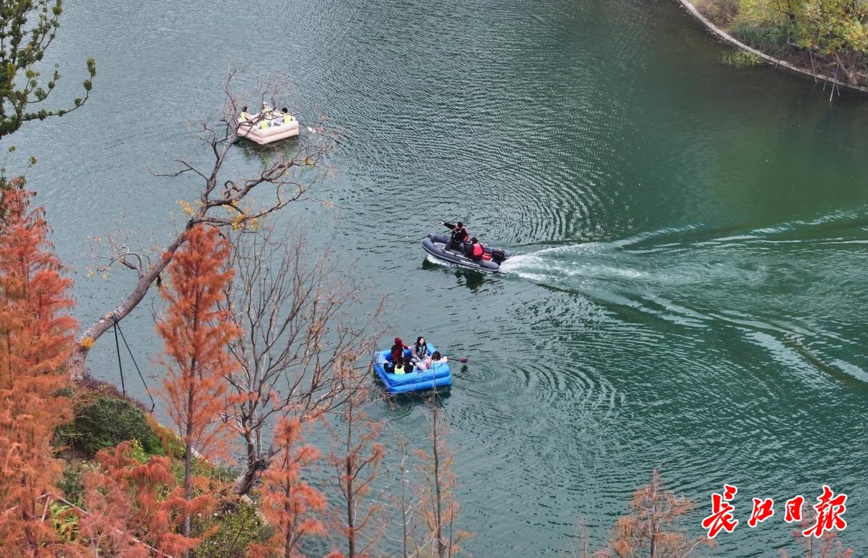 城市观察团成员在湖中体验考察。记者彭年 摄