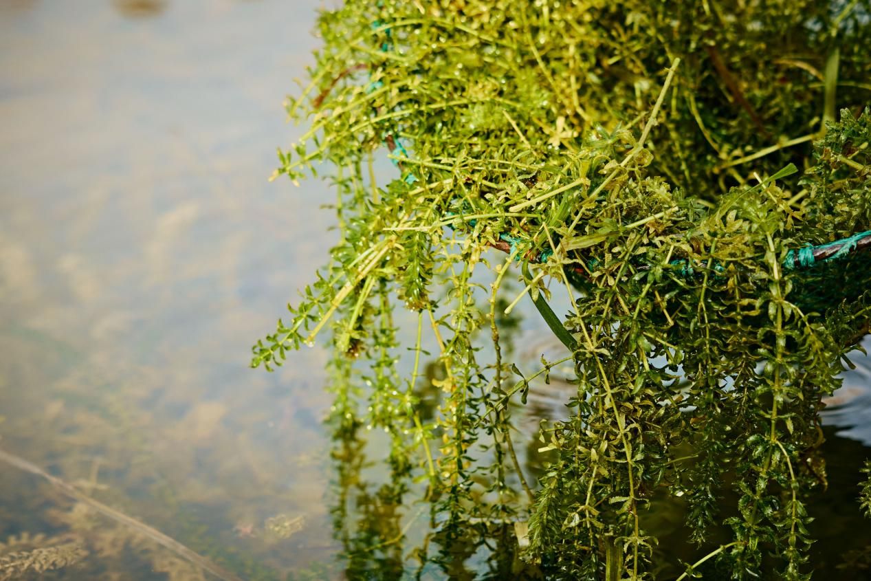 湖中打捞起的水草。