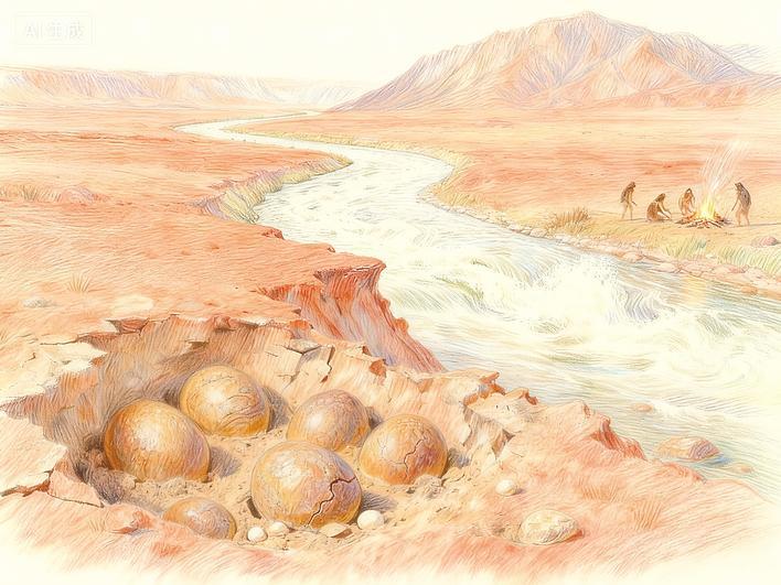 研究显示,青龙山段古汉江河床曾经历多次构造抬升(单次60米至80米)、河道北移及河谷下切,现存山顶325米级阶地与汉江现河床(海拔仅170米)形成鲜明对比。这一演化过程不仅塑造了青龙山独特的地貌,更可能成为全球罕见“埋藏浅、出露广”的恐龙蛋化石群形成的关键因素。