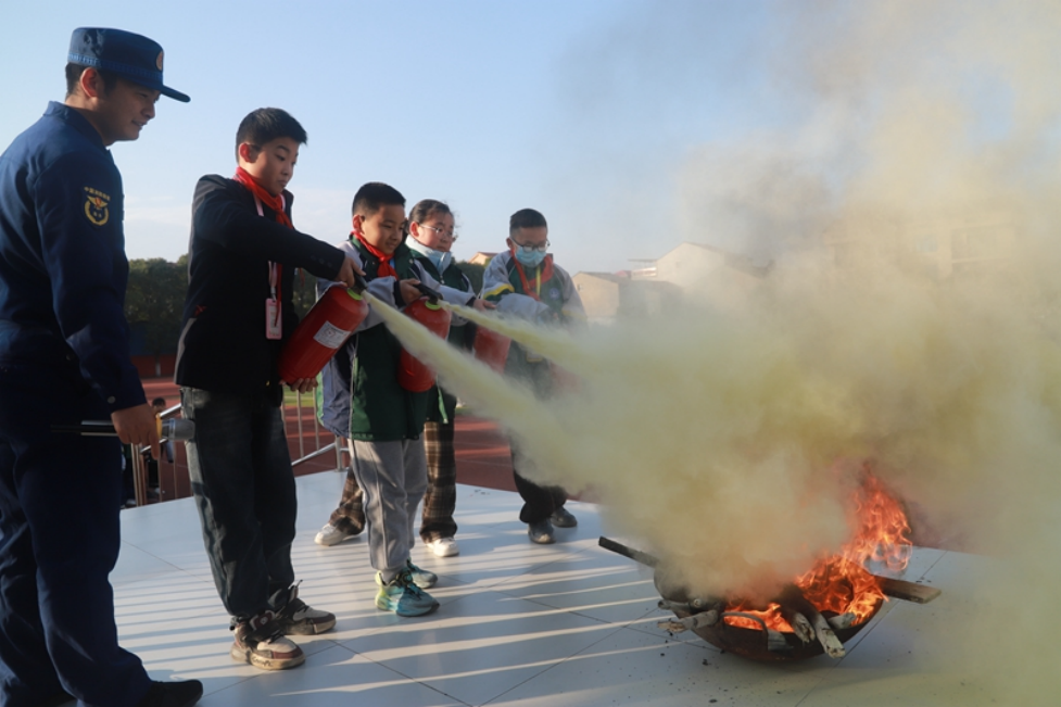 演习结束后,大队组织全校师生开展了一次消防安全知识培训课。培训中,消防宣传人员结合近年来典型火灾案例,深入浅出地向师生们讲授了火灾的危险性,校园日常防火知识,如何正确拨打火警电话“119”,如何使用灭火器扑救初期火灾,火场如何逃生自救等消防安全常识;并就灭火器的使用进行了现场操作演示,加深师生们对灭火器掌握使用的了解与认识,在消防员的现场指导下,学生们对灭火器的使用进行了实际操作,亲身体验了使用灭火器扑救初期火灾。