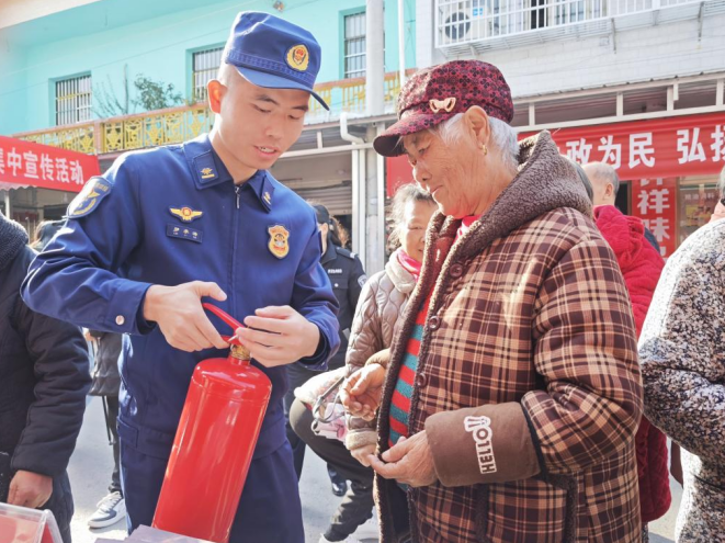 宣传员现场演示了灭火器“提、拔、握、压”的操作步骤和注意事项,并邀请部分群众进行体验,有效提升了公众应对初起火灾的实操能力。现场精心准备了内容详实、图文并茂的冬季防火知识手册、家庭消防安全提示单等宣传资料,现场发放给往来群众,方便群众带回家中进一步学习,将消防安全知识传递至更多家庭。