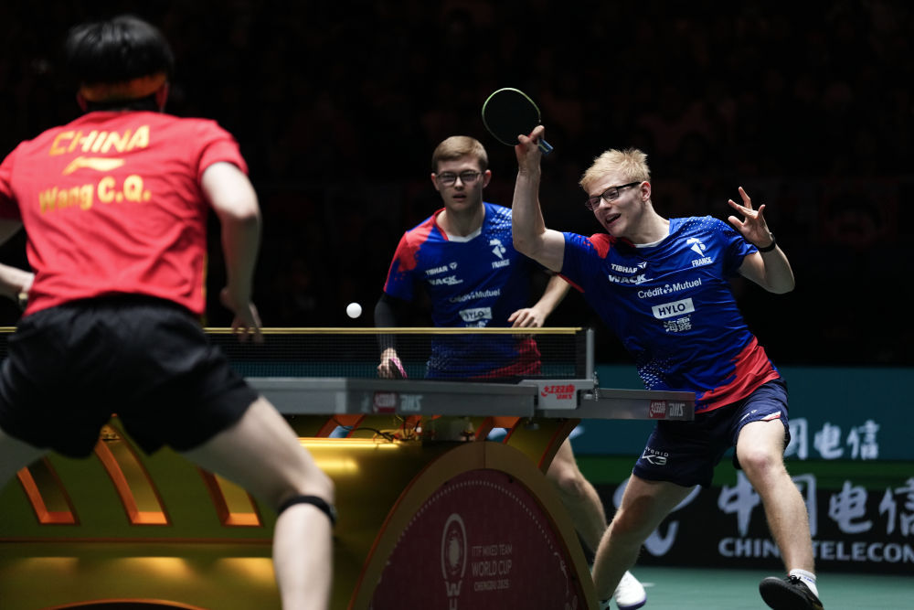 12月4日,在四川成都举行的2025年国际乒联混合团体世界杯第二阶段比赛中,中国队总比分8比2战胜法国队。