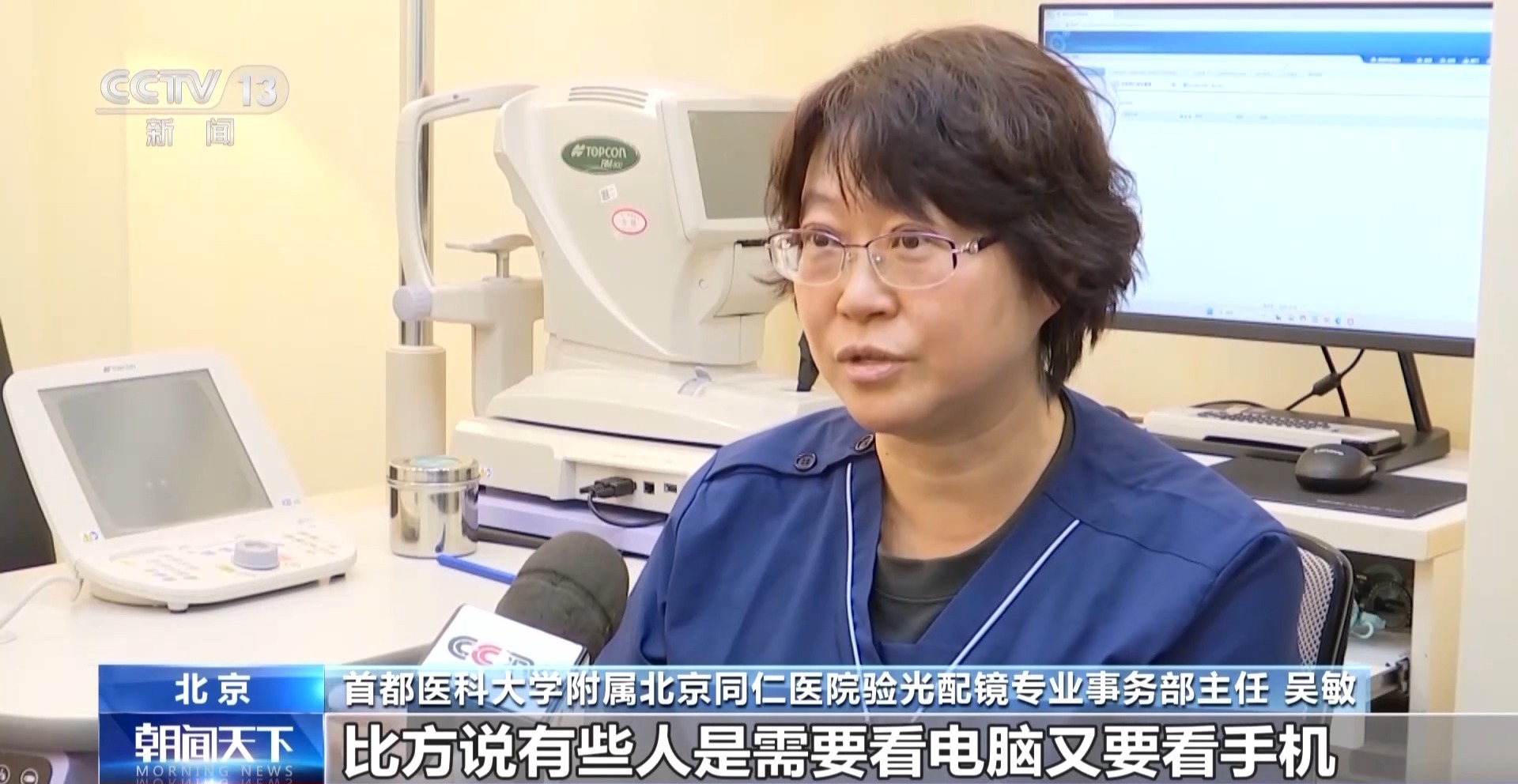 首都医科大学附属北京同仁医院验光配镜专业事务部主任 吴敏:对于每个人来说,眼睛屈光度可能都是不一样的,成品老花镜没有办法满足需求,我们肯定是建议要验配老花镜的。而且每个人用眼的场景还不太一样,比方说有些人是需要看电脑,又要看手机,普通的老花镜就达不到这个效果。