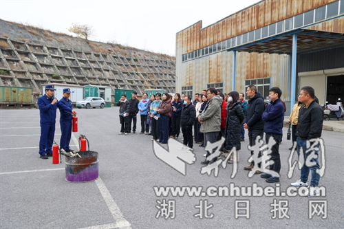 现场讲解灭火器的使用方法。通讯员 魏欢欢 摄