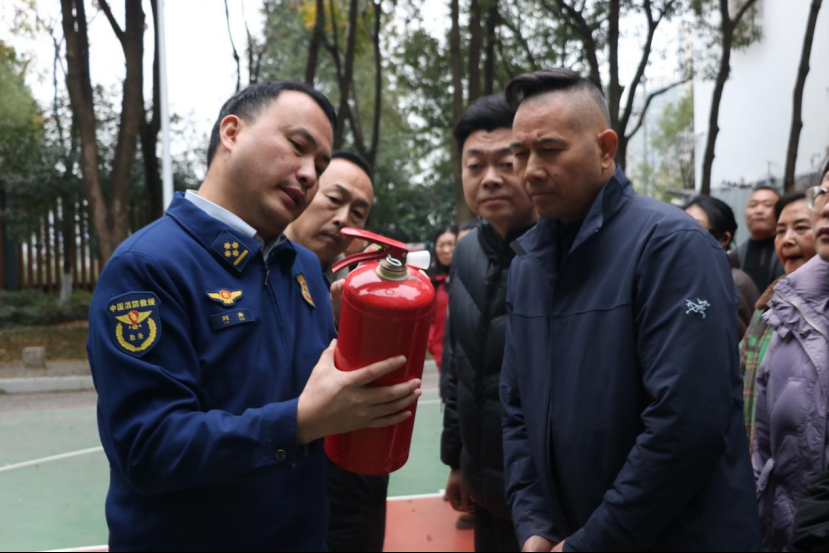 理论培训结束后,大队随即组织网格员同步开展疏散演练与灭火器实操讲解。疏散演练模拟居民楼突发“火灾”,指导网格员引导人员有序撤离;灭火器实操则现场讲解操作要点,让网格员亲手实践掌握初期灭火技能。过程中,大队监督员全程跟踪指导,及时纠正不足,演练后还围绕关键环节开展复盘讨论,确保“练一次、进一步”。