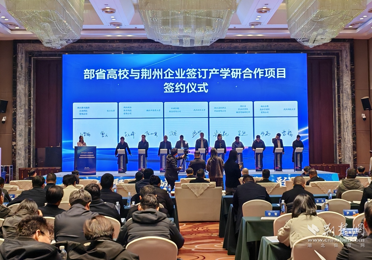 对接会上,华中农业大学校长严建兵、武汉工程大学校长张彦铎、武汉纺织大学校长傅欣、长江大学校长刘勇胜先后讲话。他们表示,将锚定此次对接会的新起点,与荆州开展更精准对接,深化产学研融合,在联合攻关、平台建设、人才互动等领域全力推动务实合作。湖北洪山实验室、湖北光谷实验室、长江大学、武汉理工大学、华中科技大学5项重大科技成果先后进行路演。荆州市科技局与湖北技术交易所等6家机构签订科技创新战略合作协议;部省高校与20家荆州企业签订产学研合作项目协议;湖北技术交易所与9家国家技术转移中部中心基层站点签订建设协议。