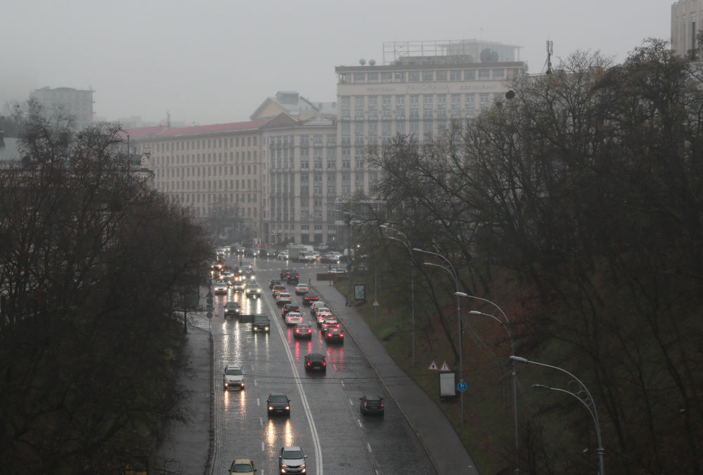 11月20日,乌克兰首都基辅主要街道的照明设施出现大面积停电,车辆在暮色中行驶。新华社记者李东旭摄