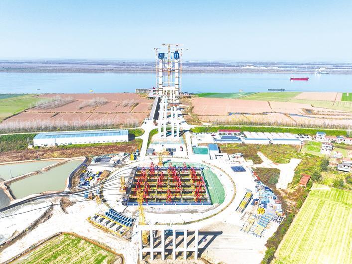 汉南长江大桥南锚碇沉井已下沉到位。(湖北日报通讯员 黄珊 摄)