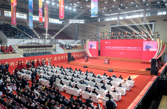 荆楚网(湖北日报网)讯(记者 吕鉴蕾 通讯员 向文容、曹箐箐)12月6日,湖北理工学院东区体育馆暖意融融、宾朋云集。当天,湖北理工学院高质量发展50年大会暨校友回归大会举行,国内外高校代表、知名学者代表、校友代表等与该校师生相聚一堂,共话教育高质量发展新篇。