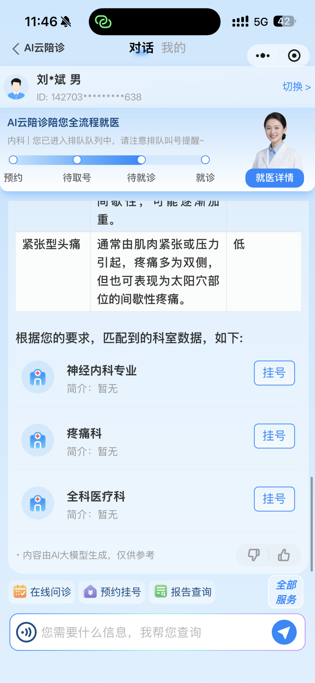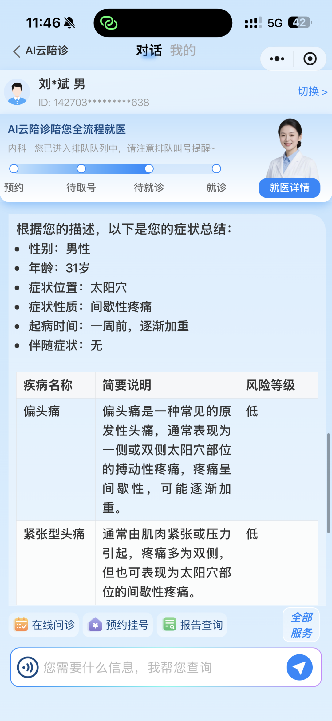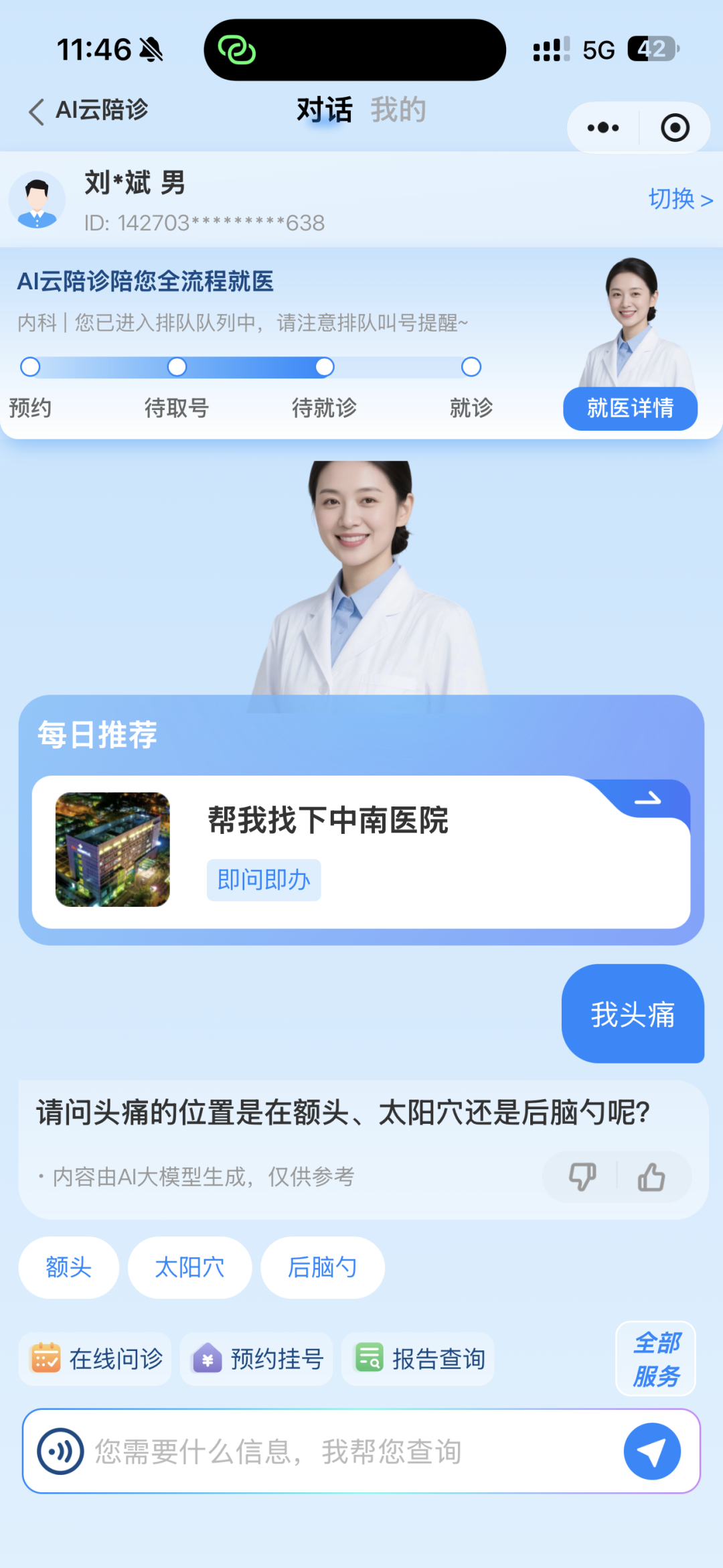 比如你头痛需要问诊时