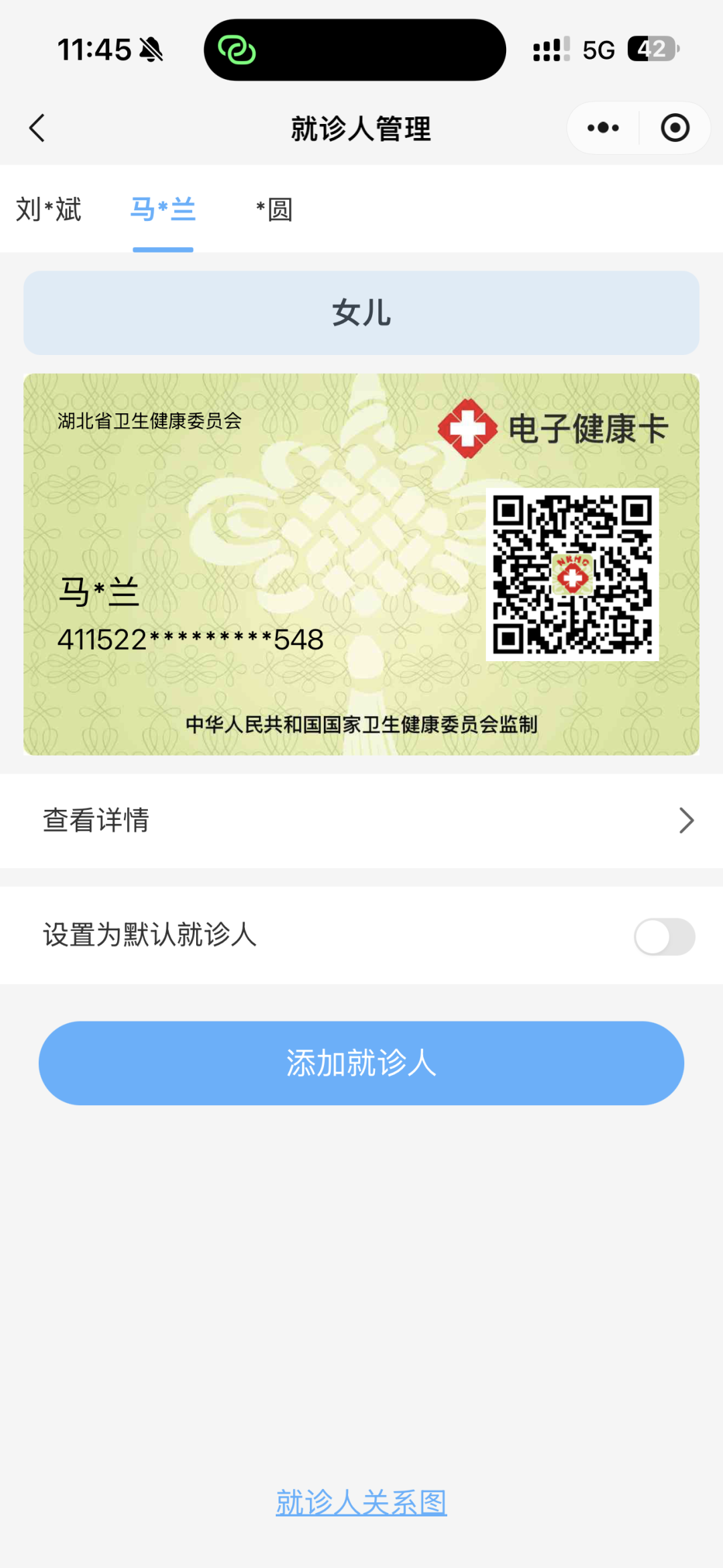 最上方显示就诊人信息