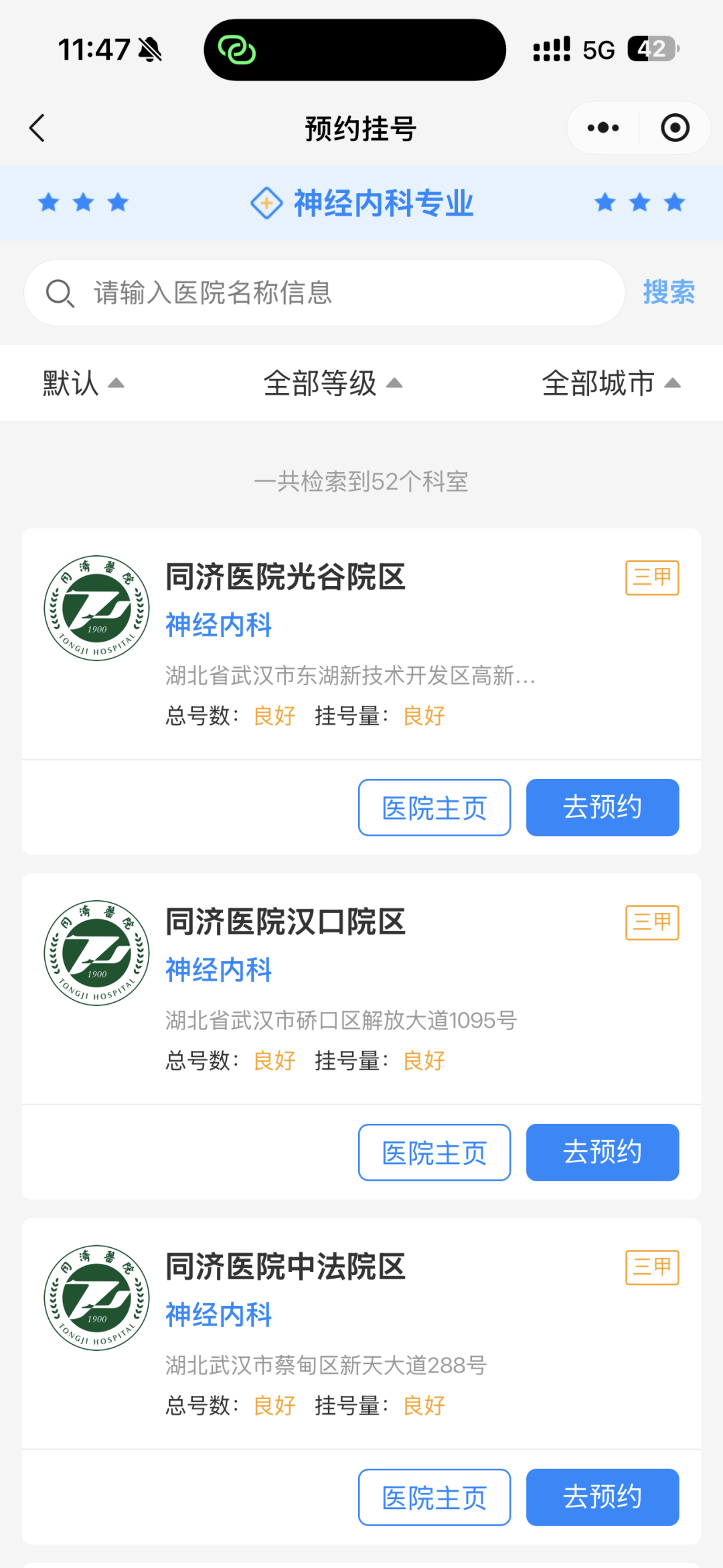 选择推荐科室后,一键跳转到医院选择界面——挂号就这么简单完成了。