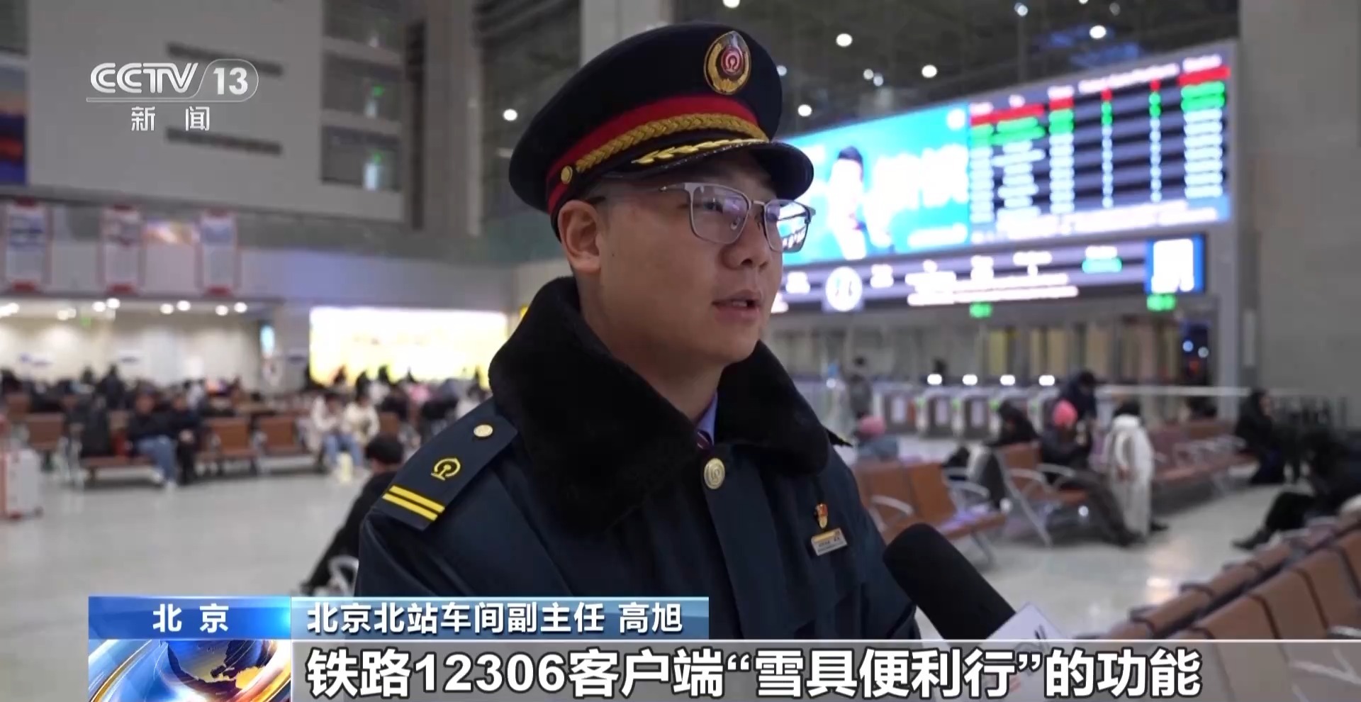 北京北站车间副主任 高旭:携带雪具出行的旅客可通过铁路12306客户端“雪具便利行”功能查询服务信息,购买指定列车车票后,在购票成功页面选择“雪具便利行”服务并预约付费,开车前10分钟停止受理,开车前1小时可取消订单并全额退款。