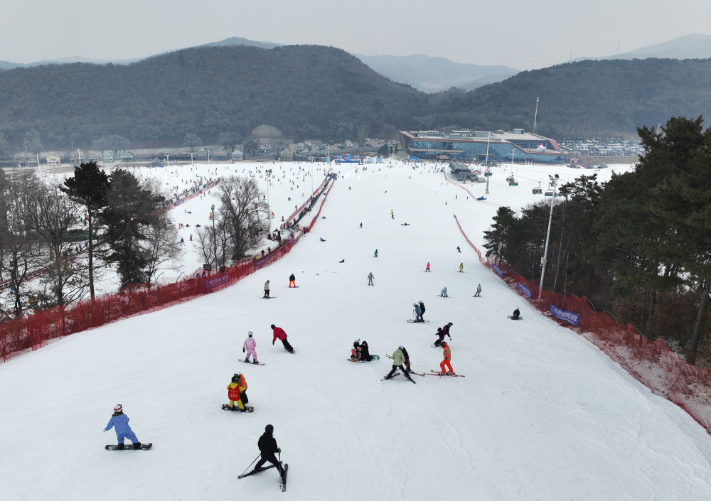 周末,沈阳东北亚国际滑雪场迎来众多滑雪爱好者。