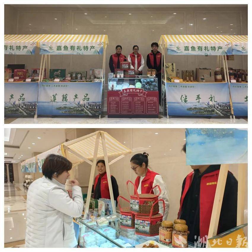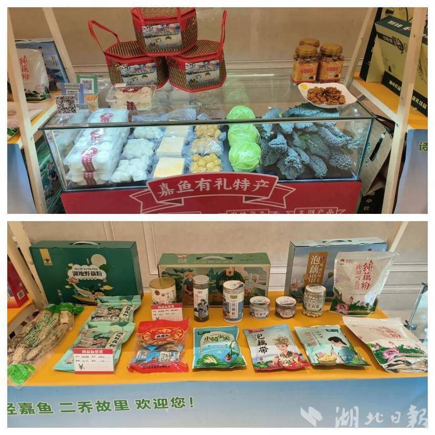 不仅如此,市集还特别设置了形象展示区。大家可以通过“嘉鱼有礼”产品展柜、旅游线路图与全域旅游全景图,直观领略嘉鱼的生态之美、文旅之韵。