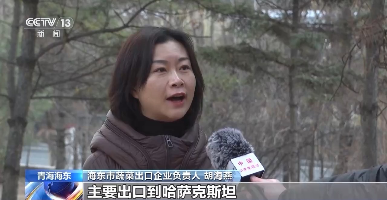 海东市蔬菜出口企业负责人 胡海燕:今年我们农产品的出口量比去年翻了一番还要多,主要出口到哈萨克斯坦、吉尔吉斯斯坦这些国家。我们出口的乐都大白菜、香菜、芹菜这些叶菜,因为海拔高、气候冷凉、病虫害少,所以口感格外脆甜,在国际市场上很受欢迎。