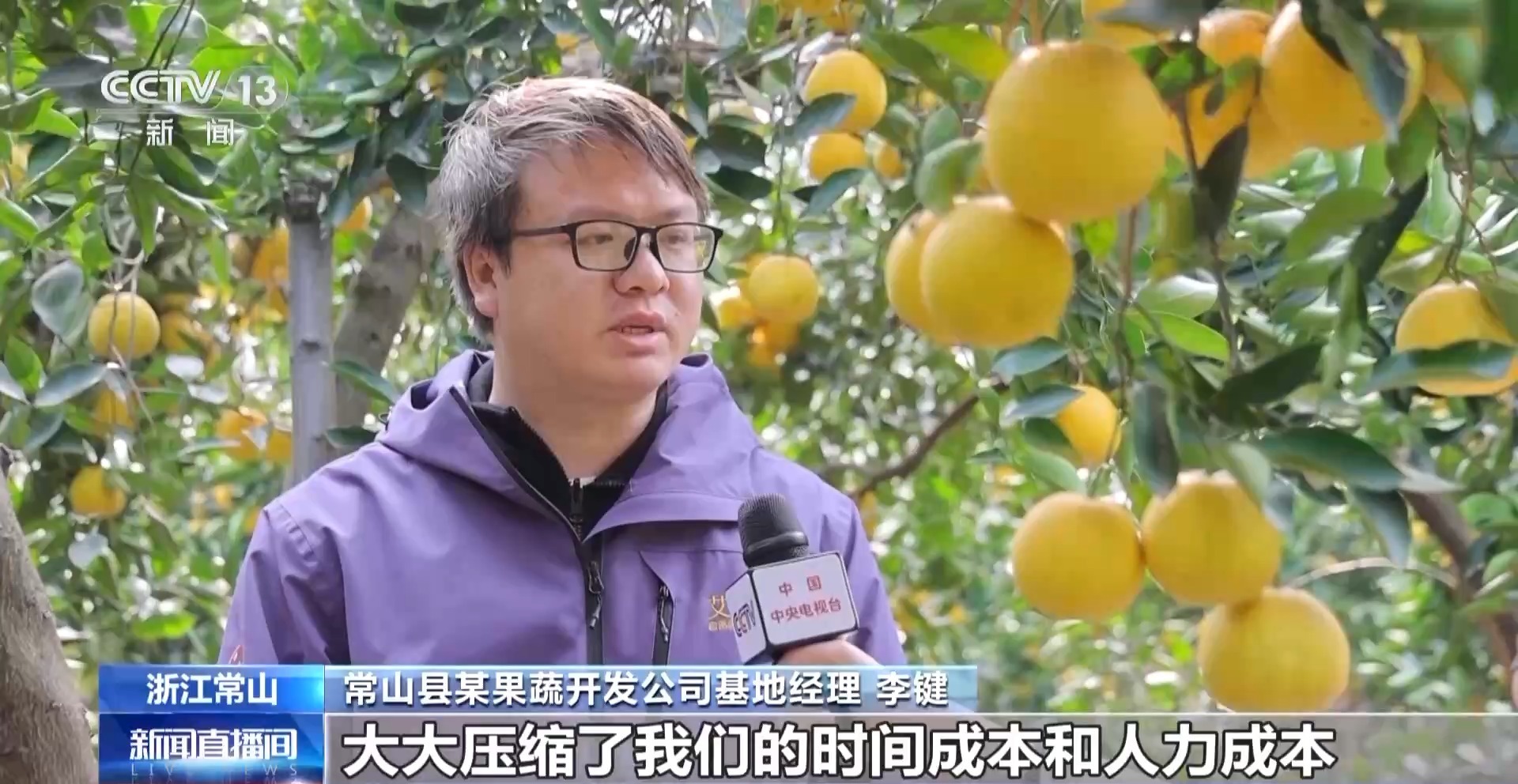 常山县某果蔬开发公司基地经理 李键:一趟轨道车可以运500斤的胡柚,而且只要原来时间的六分之一,大大压缩了我们的时间成本和人力成本。