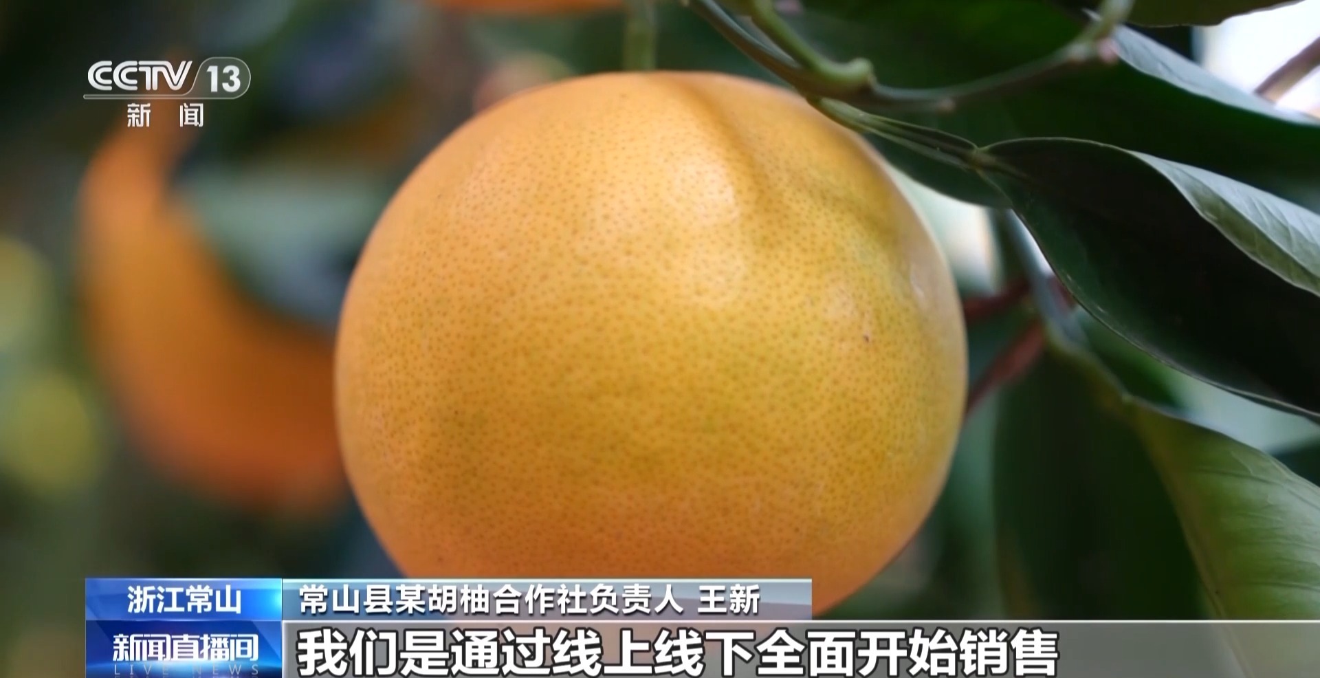 常山县某胡柚合作社负责人 王新:我们是通过线上线下全面开始销售,特别是线上直播间,每天的胡柚销售量大概有2000多箱,还有深加工的果汁,销售也非常火爆。