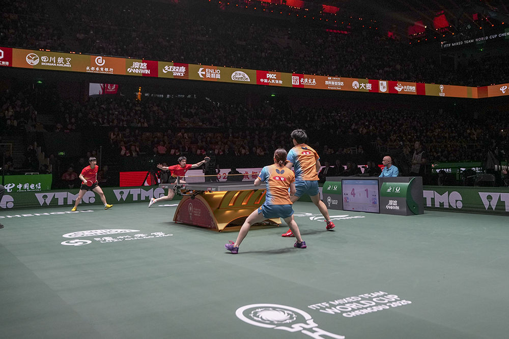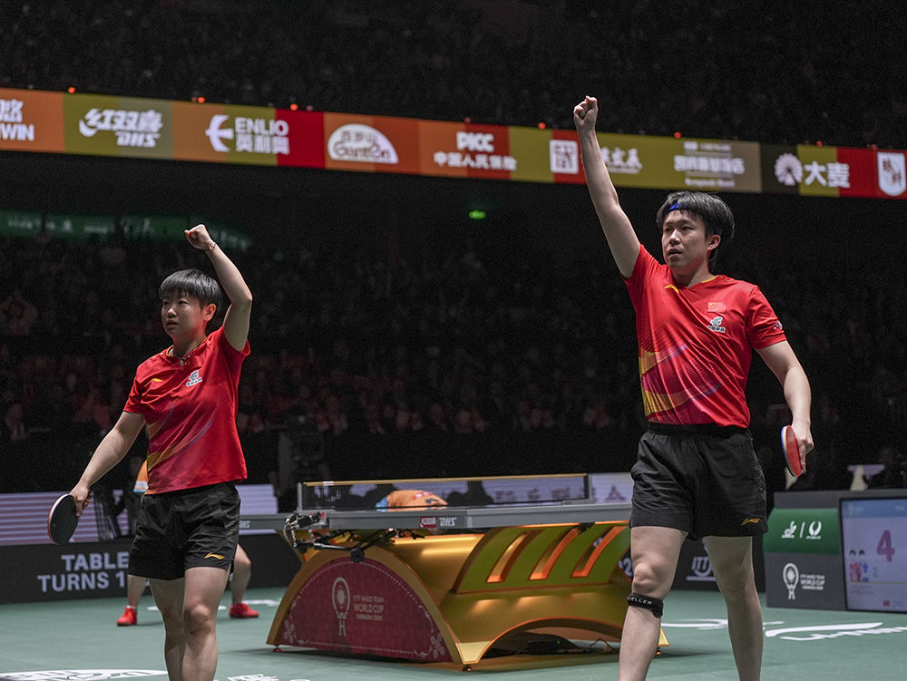 12月7日,在四川成都举行的2025国际乒联混合团体世界杯决赛中,中国队战胜日本队,夺得冠军。